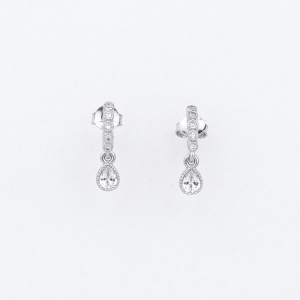 Renkli Baget Taşlı Halka Gümüş Küpe