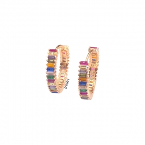 Renkli Baget Taşlı Halka Gümüş Küpe