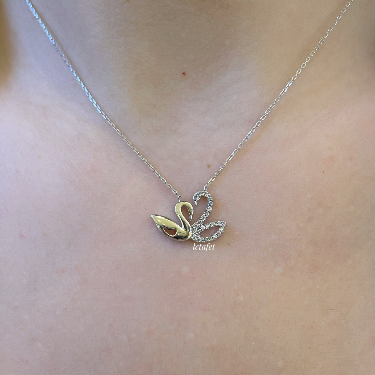Kuğu Taşlı Gümüş Kolye Küp Zincir Gümüş Şahmeran (Gold)