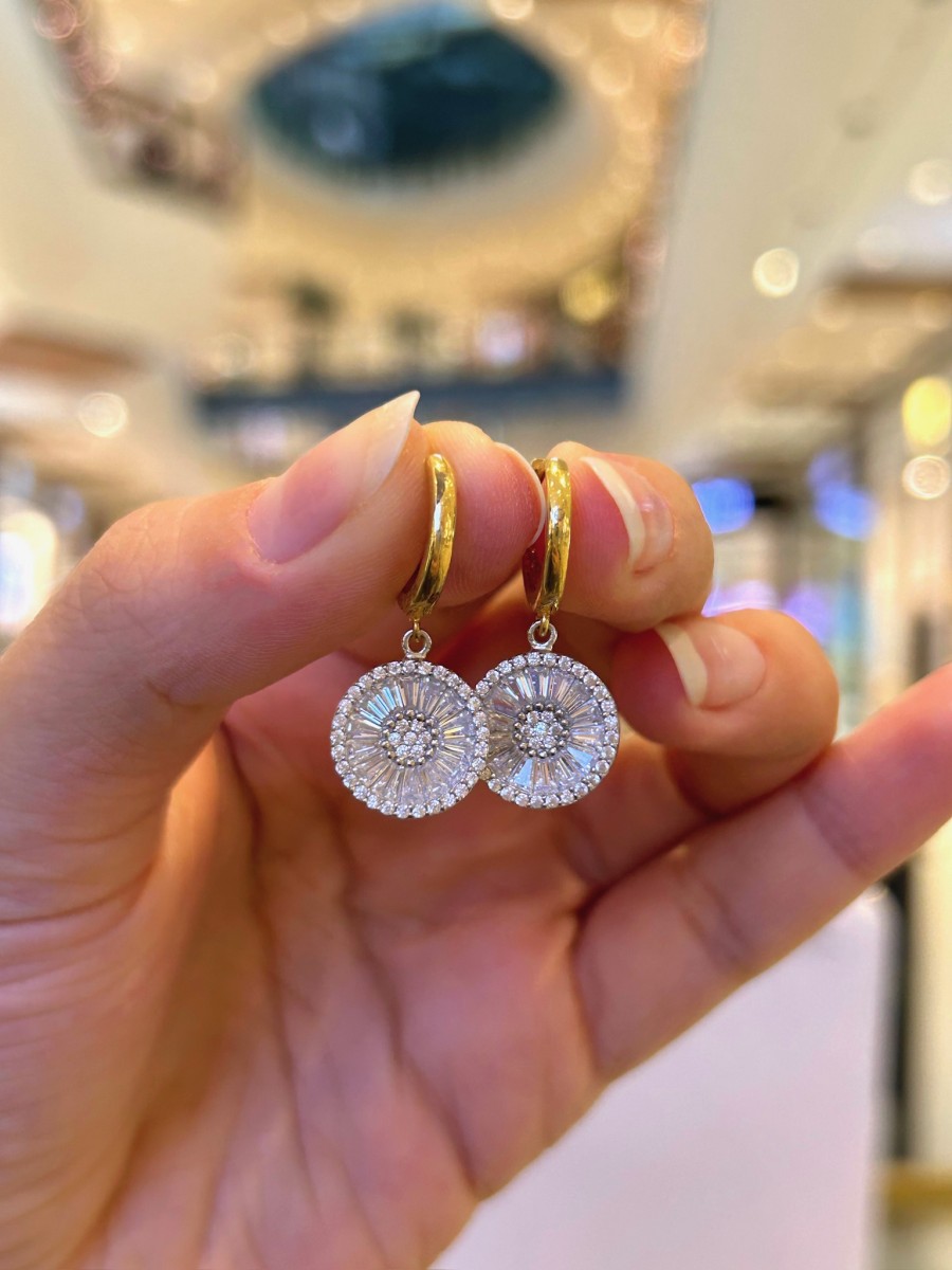 Baget Taşlı Sembollü Gümüş Küpe