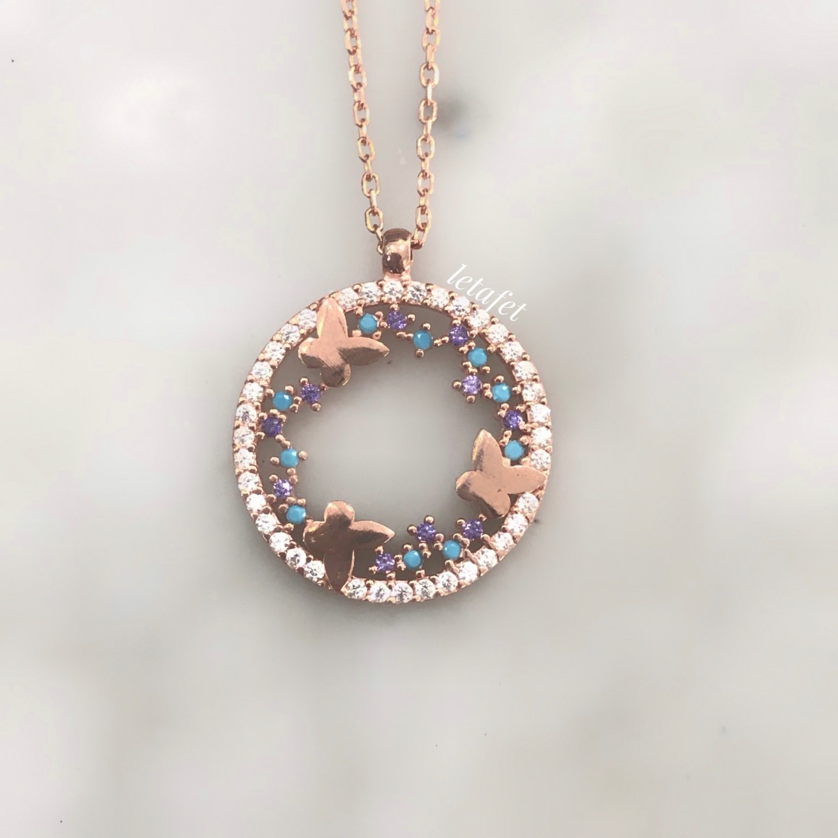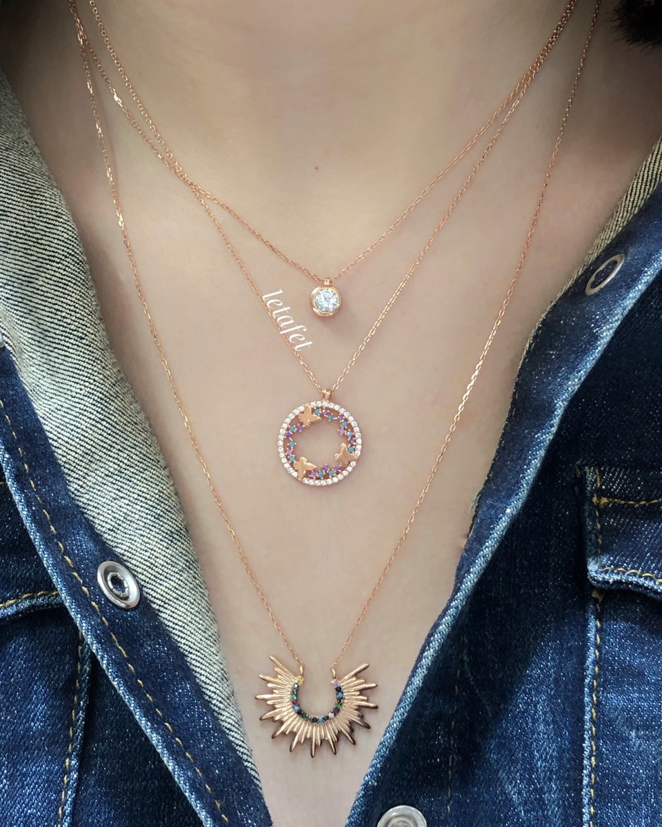 925 ayar gümüş üzeri rose altın kaplamadır.