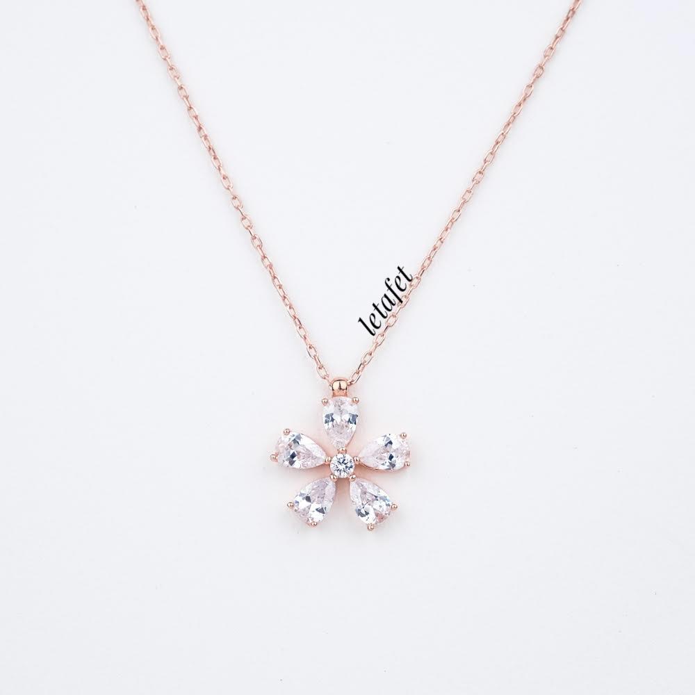 Çiçek Baget Minimal Kolye Rose Üçlü Minimal Deniz Yıldızı Gümüş Kolye Rose