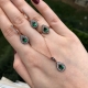 Damla Elmas Montür Zümrüt Set Hayat Ağacı Gümüş Kolye Siyah