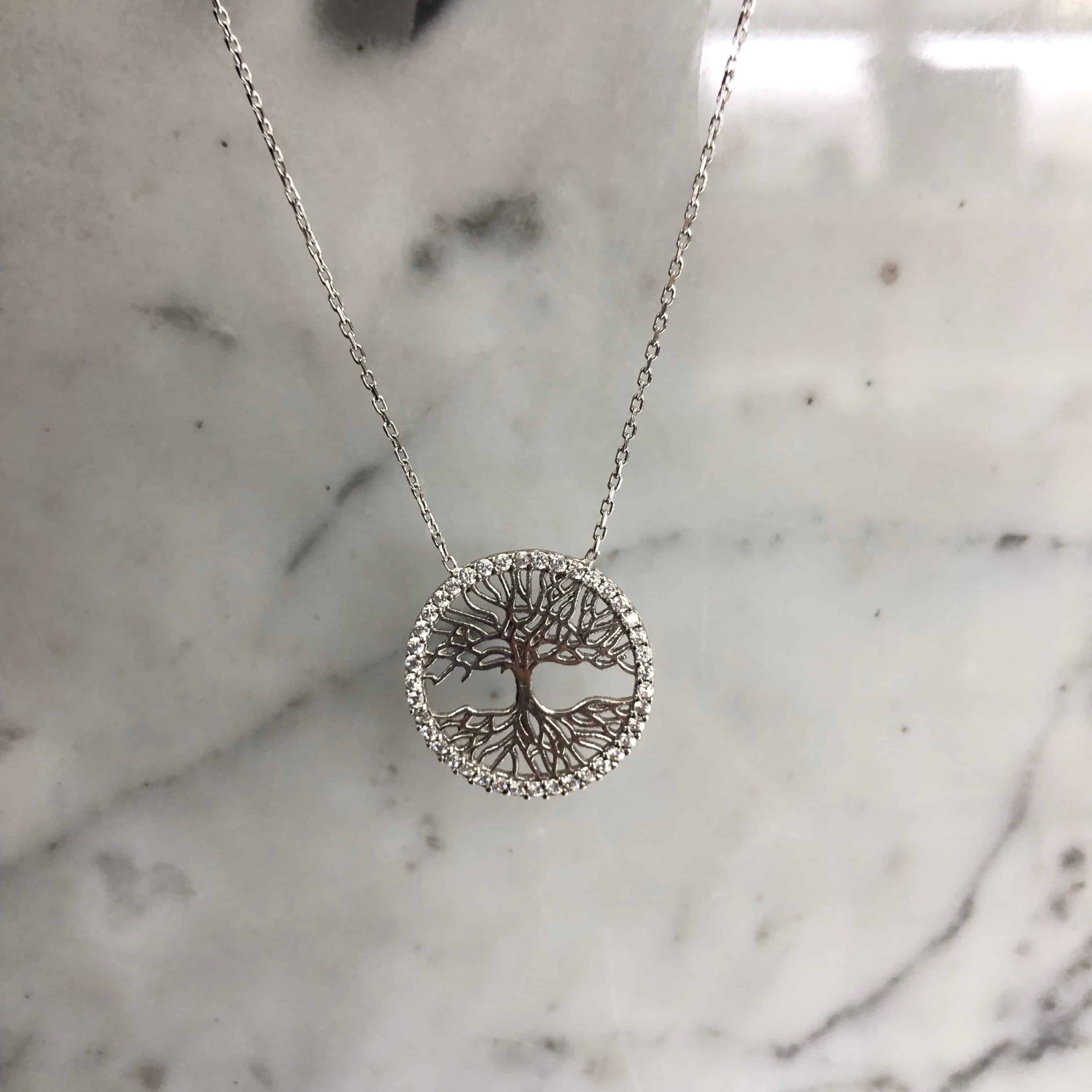 • Hayat Ağacı Gümüş Kolye Beyaz