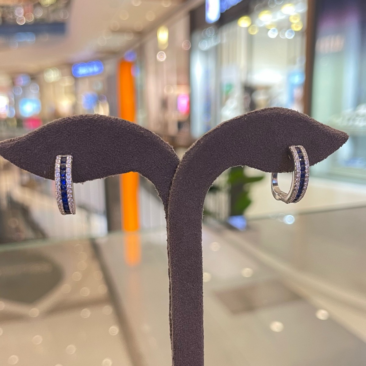 İthal Gümüş Halka Küpe Mavi