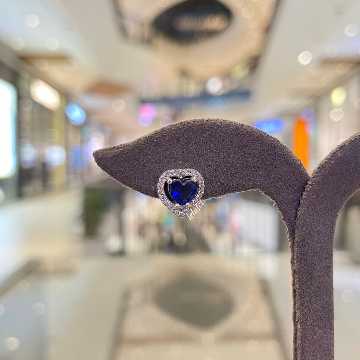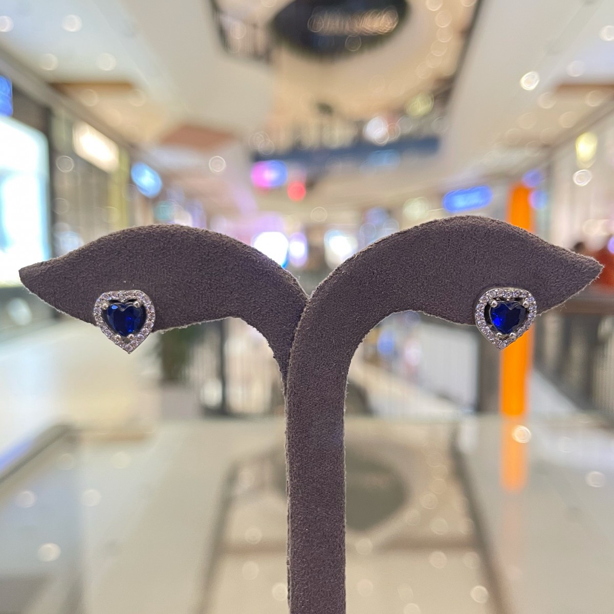 Kalp Gümüş Küpe Mavi - Görsel 3