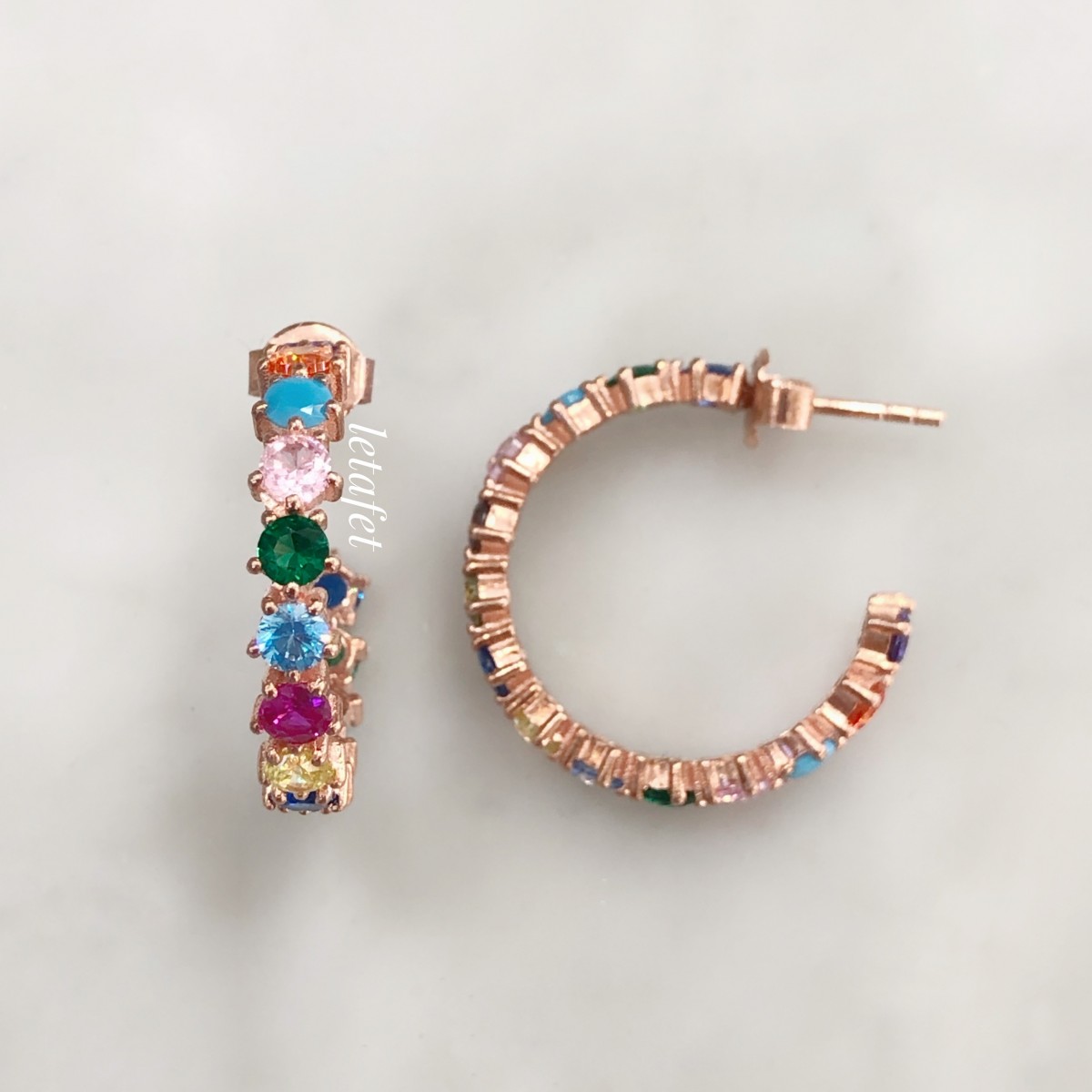 Mix Taşlı Gümüş Halka Küpe Boy 2 - Görsel 2