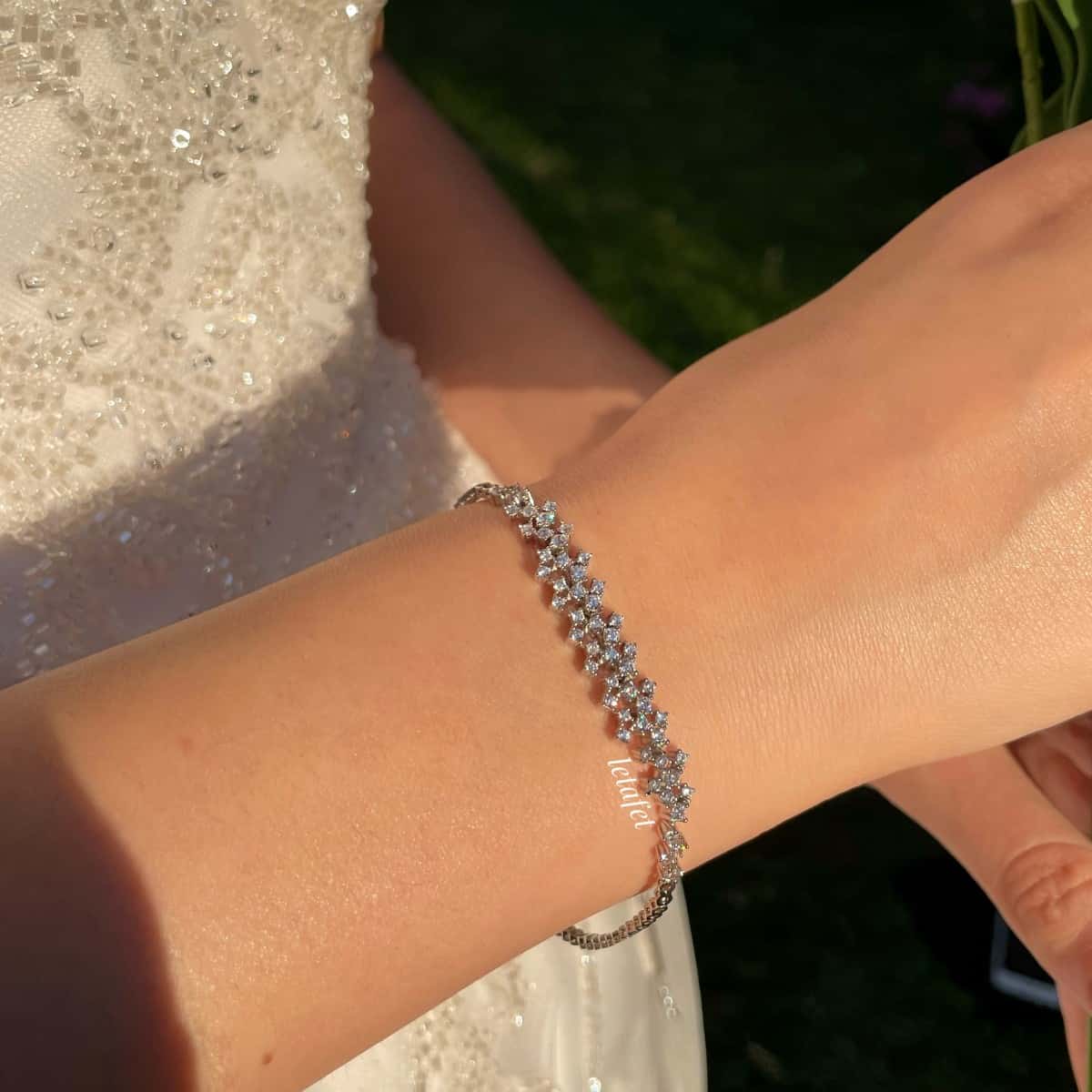 Kolye, küpe, bileklik ve yüzükten oluşan tamamı 925 ayar gümüş settir.