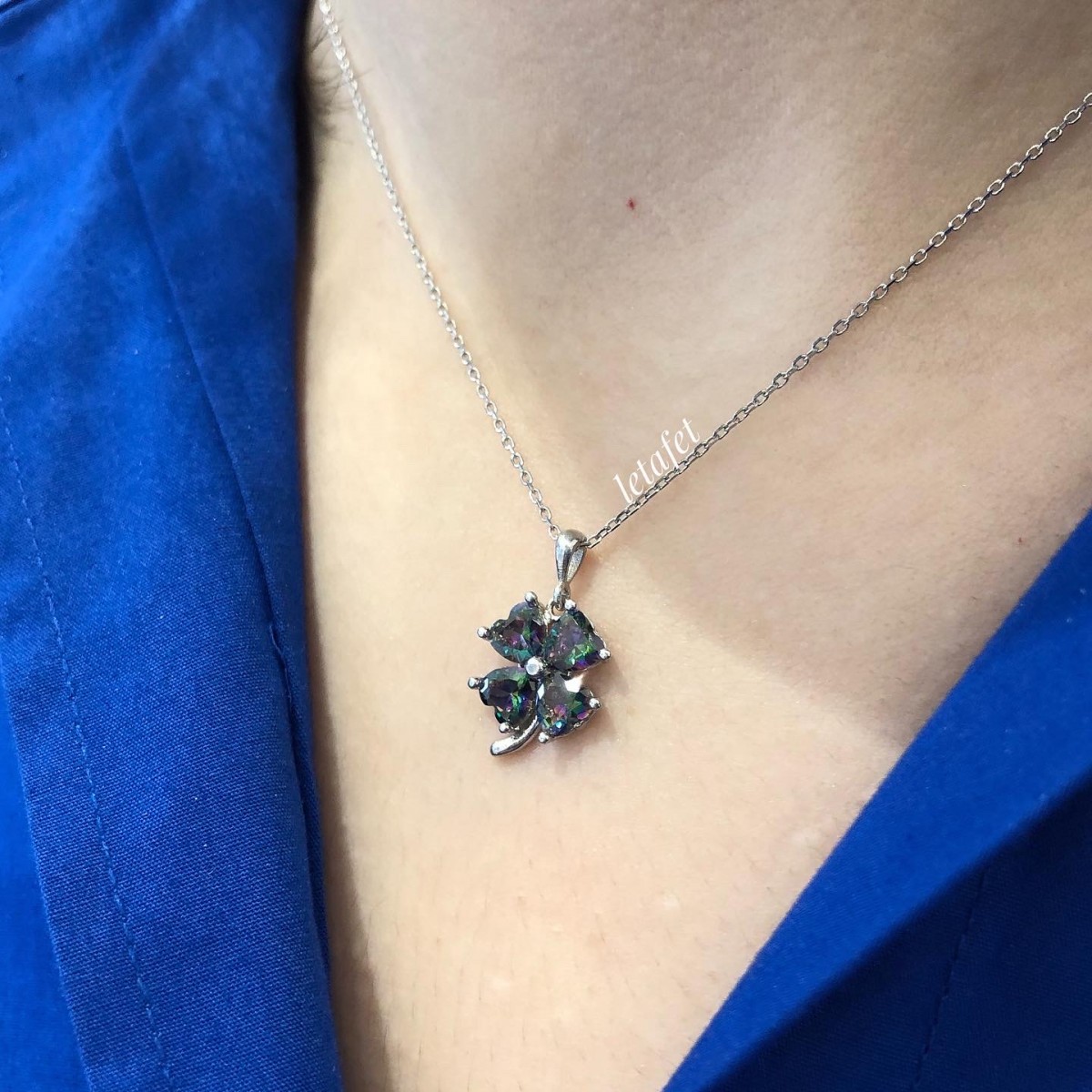 Çift renkli mistik topaz taşı kullanılmıştır.