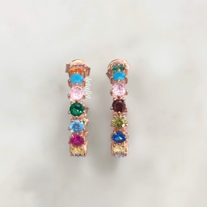 Mix Taşlı Gümüş Halka Küpe Boy 2